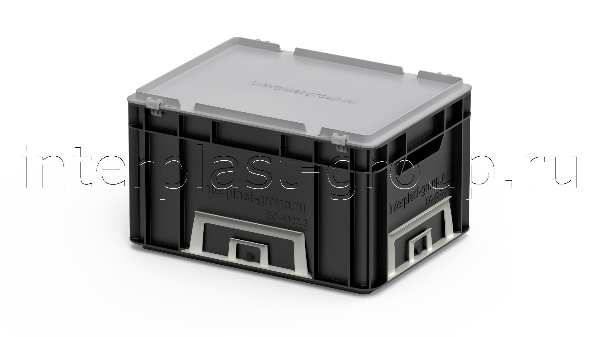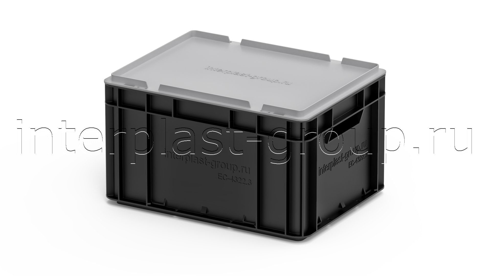 Евроконтейнер открытые ручки/усиленное дно (черный), 400x300x220 мм