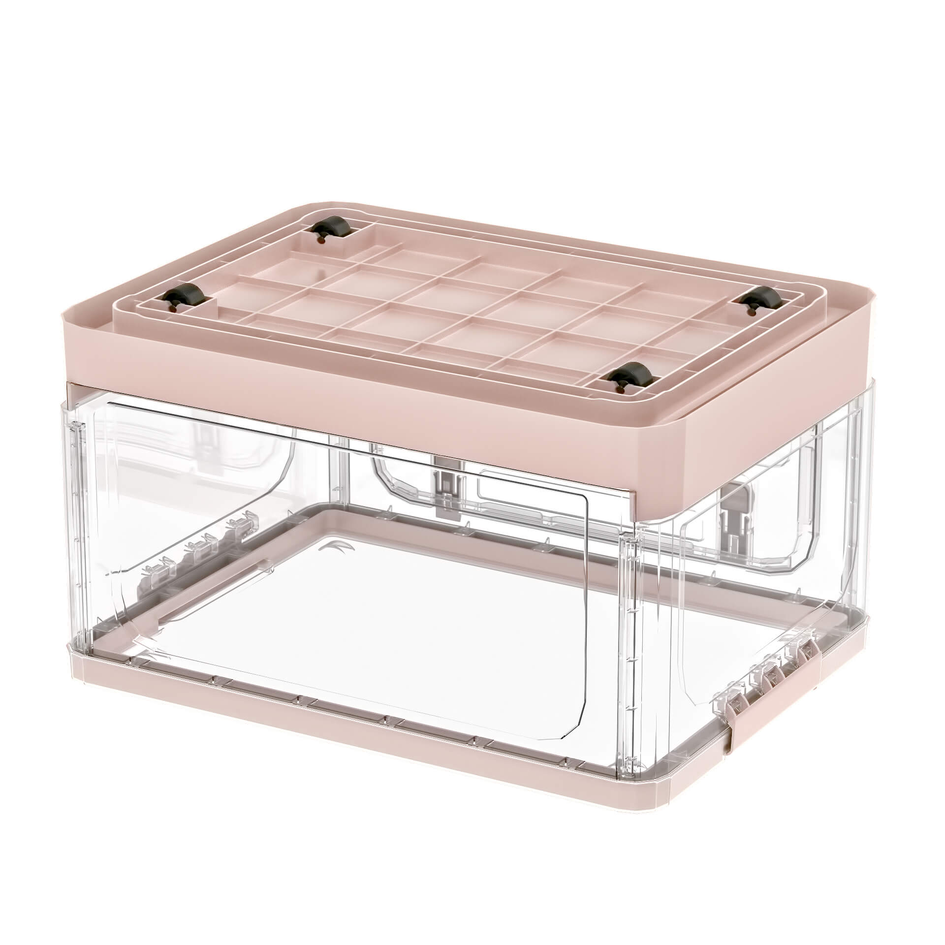 Ящик пластиковый складной прозрачный, дно розовое, 490х360х280 мм, с колесиками