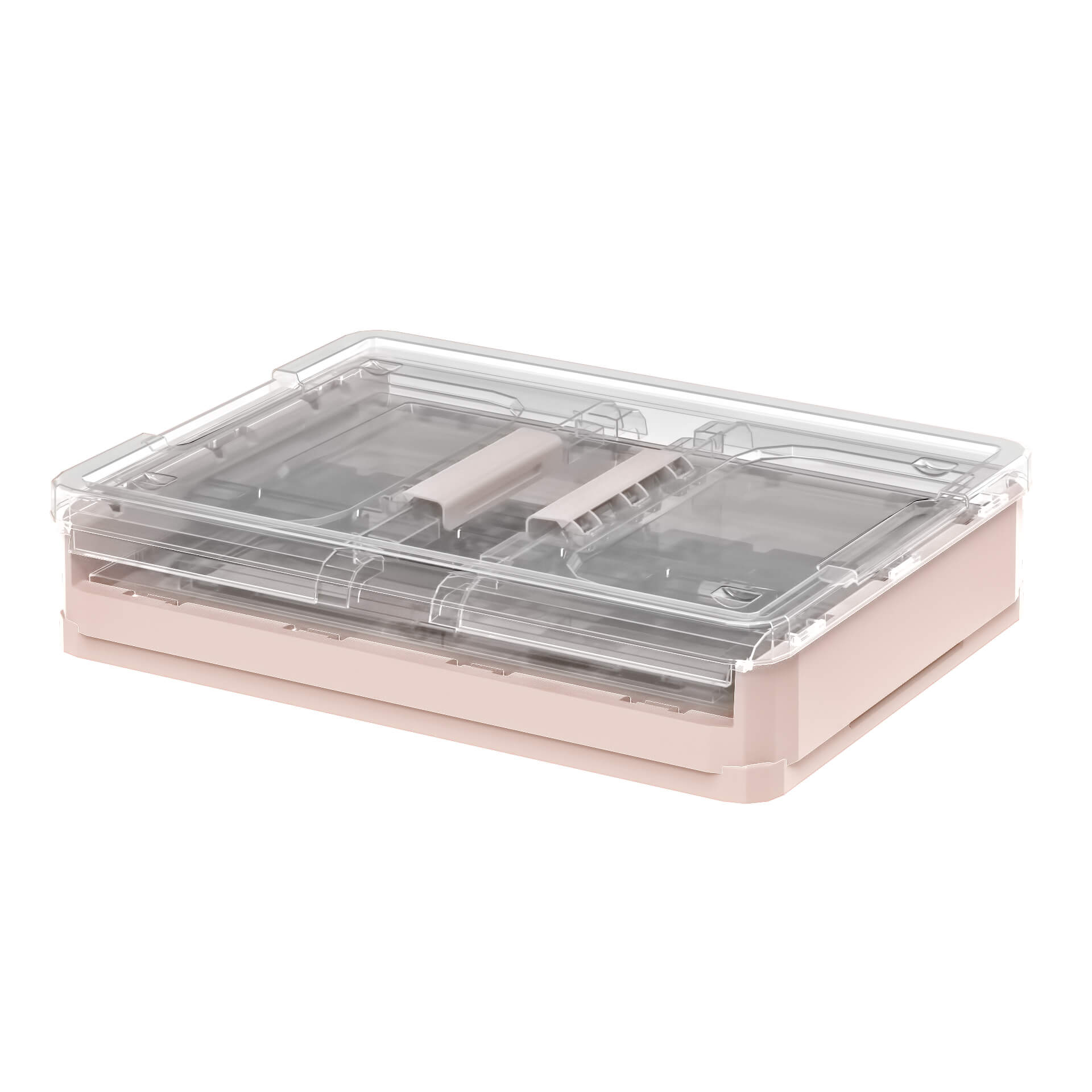 Функциональный пластиковый складной ящик – идеальное решение для организации пространства. Прозрачные стенки позволяют легко видеть содержимое, а нежно-розовое дно придает изделию аккуратный и современный вид. Пластиковый контейнер отлично подходит для хранения одежды, игрушек, бытовых принадлежностей, документов и других мелочей.