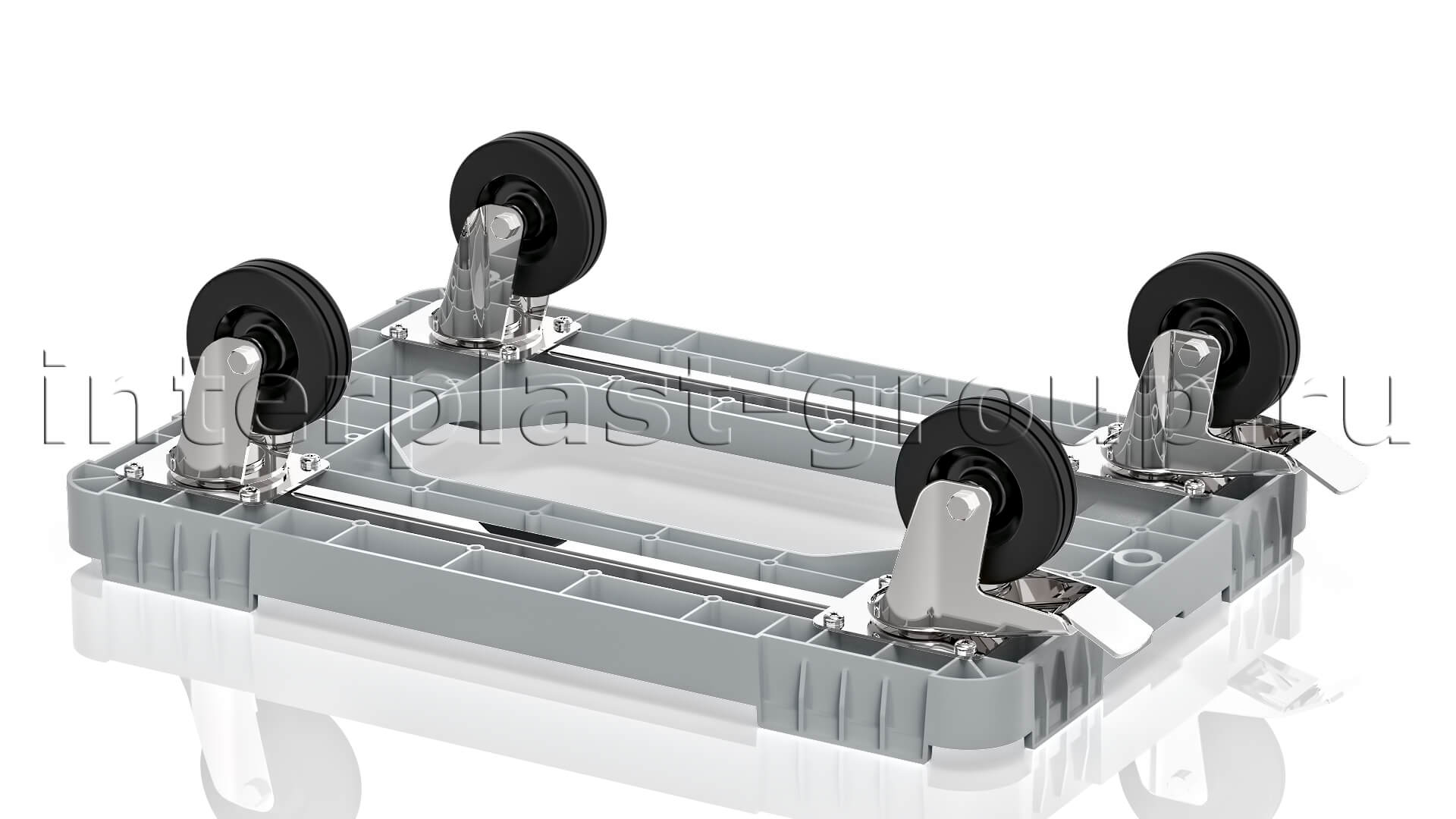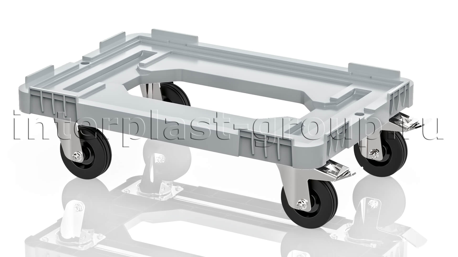 Тележка пластиковая с отверстием 2 колеса с тормозом усиленная серая в Коврове