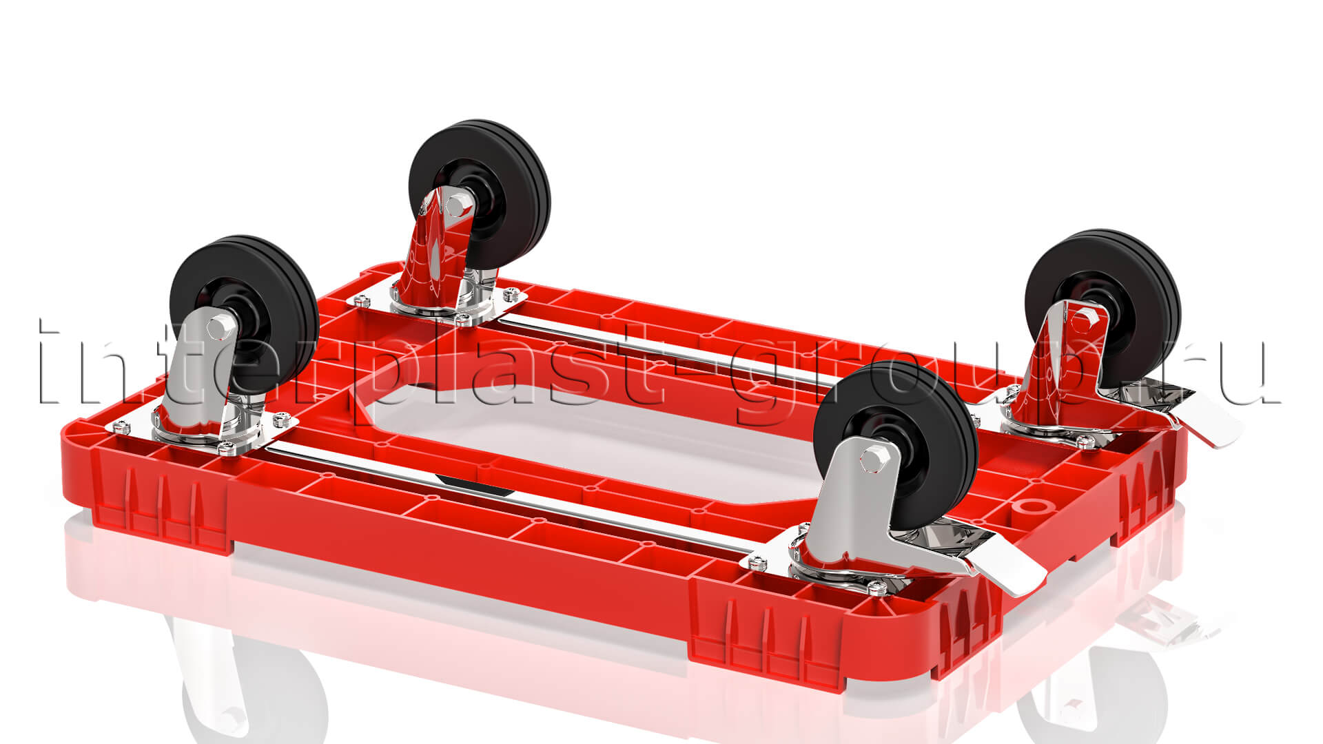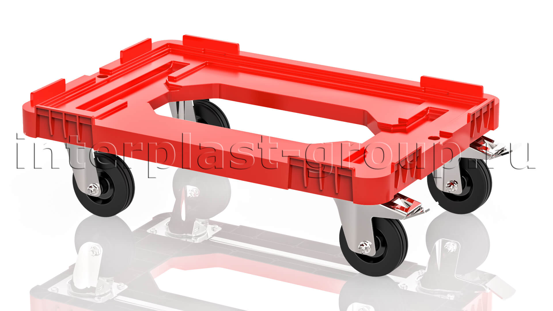 Тележка пластиковая с отверстием 2 колеса с тормозом усиленная красная в Коврове
