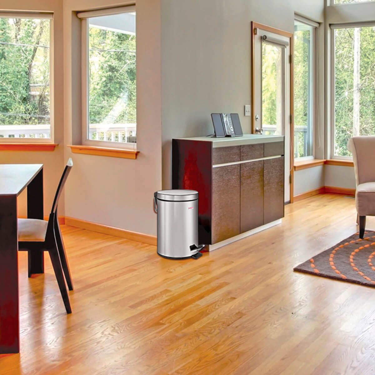 С вместительностью в 5 литров, оно прекрасно подходит для помещений с невысокой проходимостью. Педаль для открывания обеспечивает удобство использования, а плотно прилегающая крышка надежно защищает от запахов. Внутренний съемный пластиковый контейнер оснащен удобной рукояткой для легкости извлечения. Изготовлено из нержавеющей стали с антикоррозийным покрытием, что гарантирует долгий срок службы. Антискользящее основание обеспечивает устойчивость. Рекомендуемый объем мешка - 10 литров. В черном цвете с глянцевым покрытием, оно прекрасно дополнит любой интерьер.